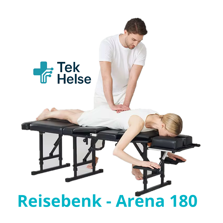 Arena 180 er en solid og sammenleggbar behandlingsbenk perfekt for fysioterapeuter, massører og terapeuter på farten.